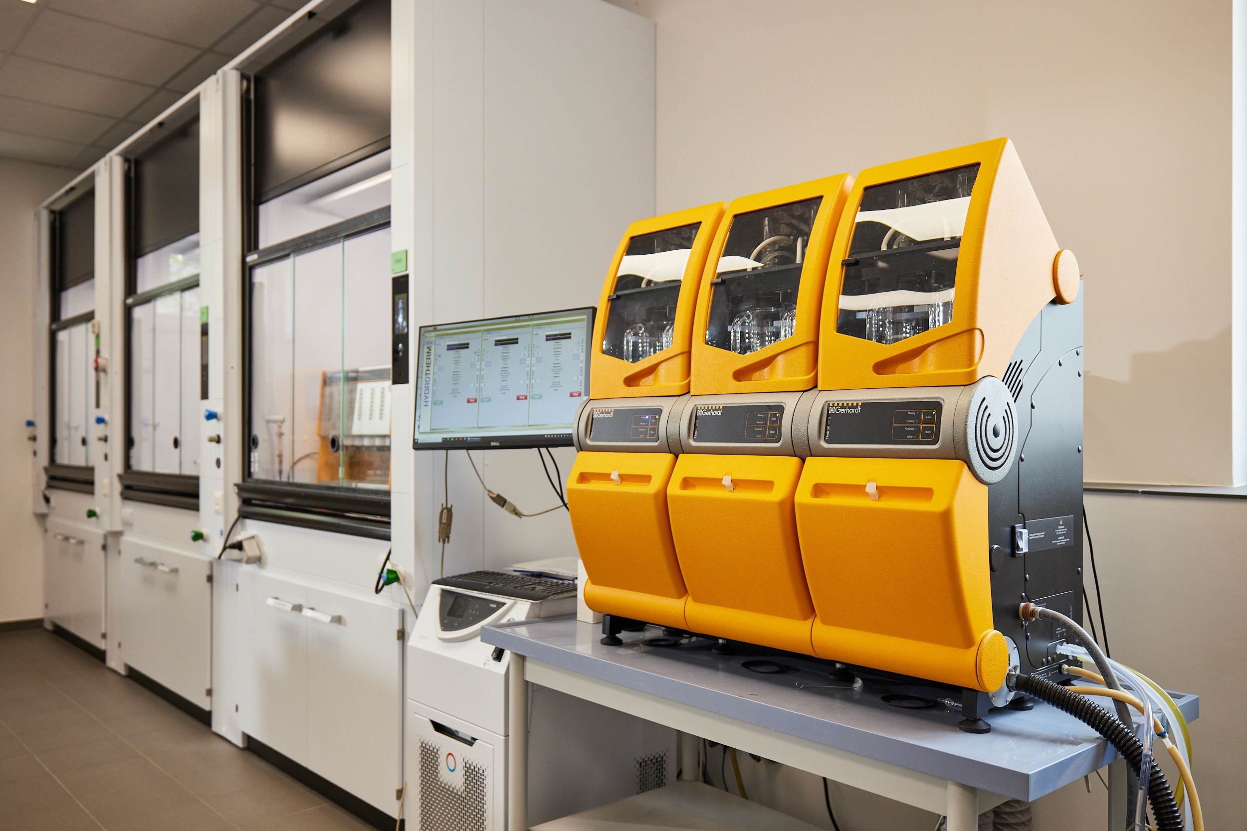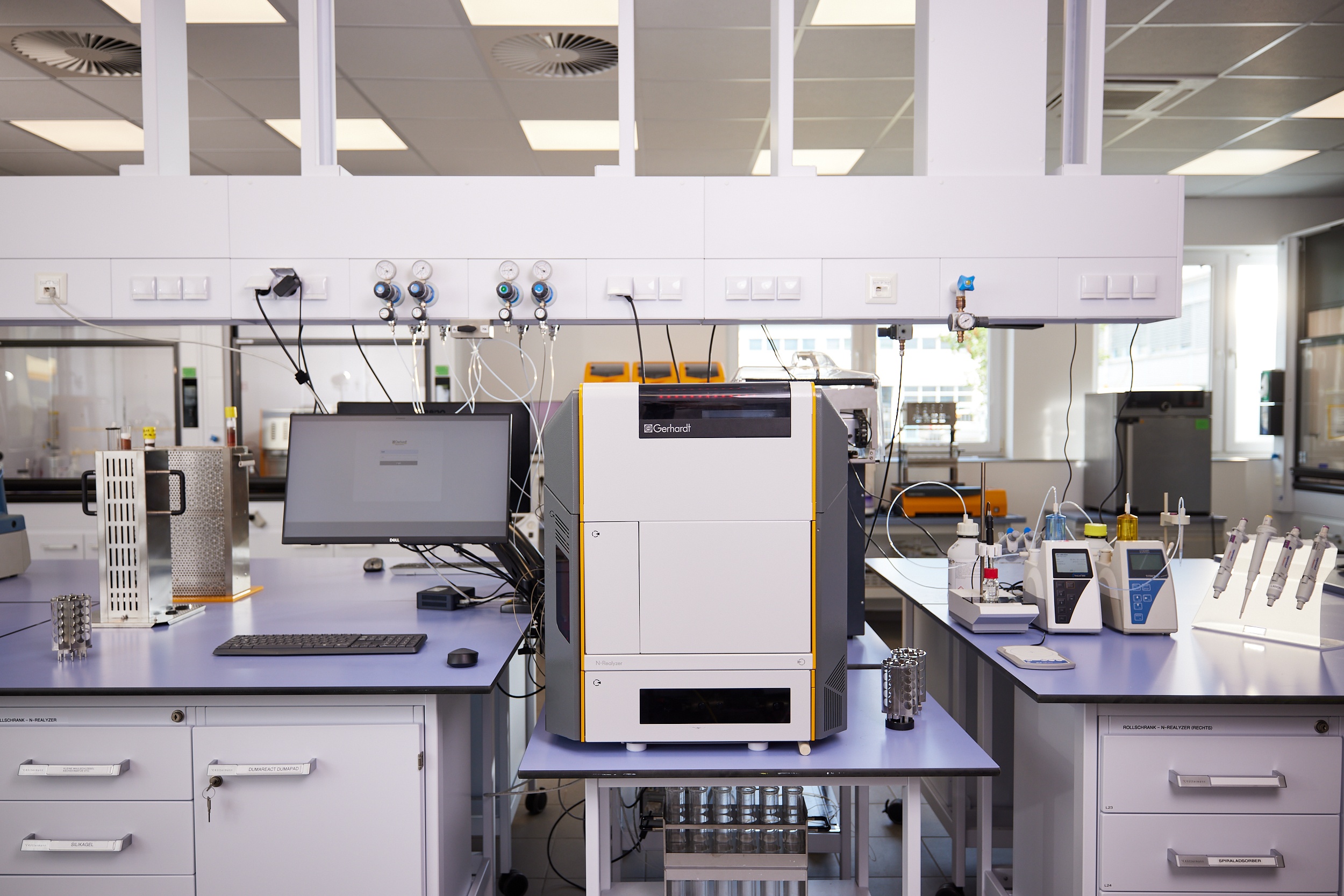 The following laboratory furniture and fume cupboards, among other items, were designed and installed in the laboratory at C. Gerhardt GmbH & Co. KG: